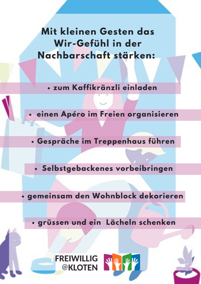- Nachbar:innen auf einen gemütlichen Schwatz bei Kaffee und Kuchen einladen